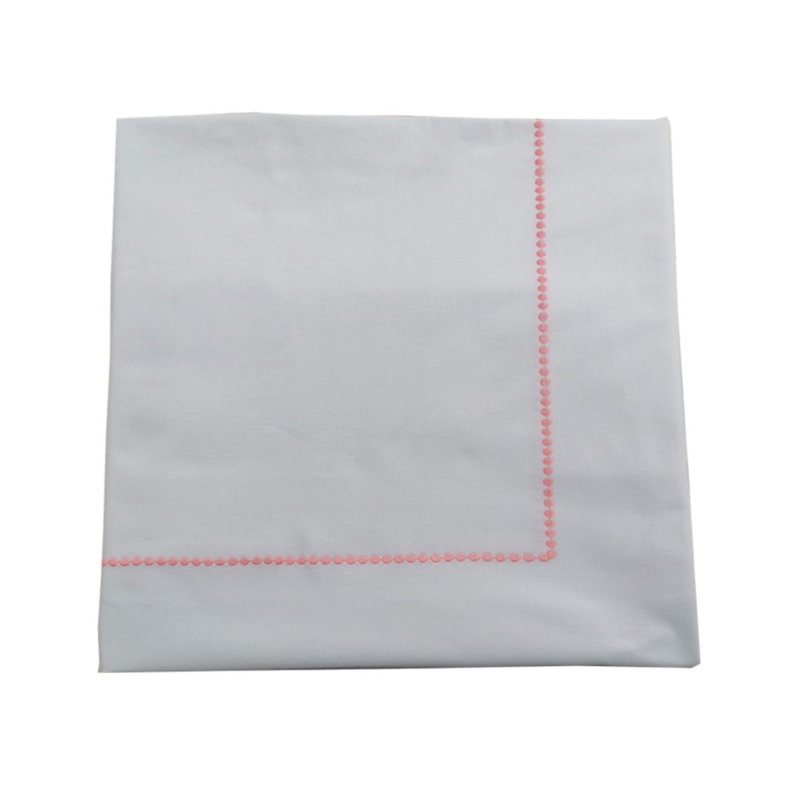 Cearsaf pat, cusatura decorativa, alb/fucsia, bumbac percale 100%, 300/280