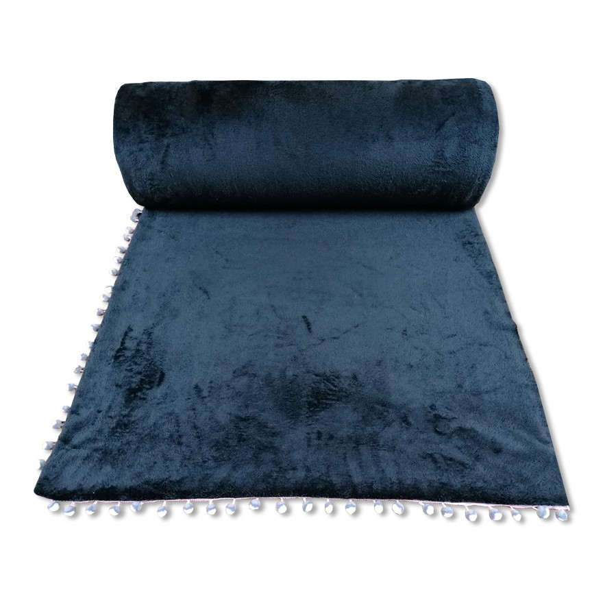 Patura banda ciucuri , flanel fleece, negru,150/190cm