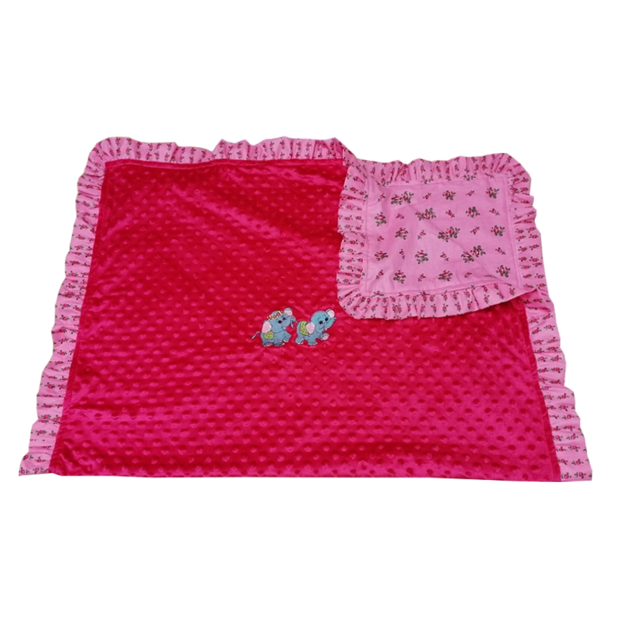 Set paturica si pernuta, Casa Bucuriei, model Elefantei, rosu/coral, plus minky si bumbac, 90 x 120 cm, fata dubla