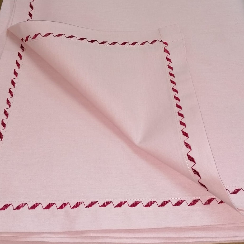 Cearsaf cu elastic pentru saltea 180 x 200 cm, Casa Bucuriei, ivory cu bordo, bumbac natural 100%, bordura decorativa