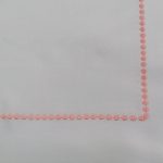 Culoare: alb, iar bordura brodata este realizata cu ata de Madeira roz piersica.