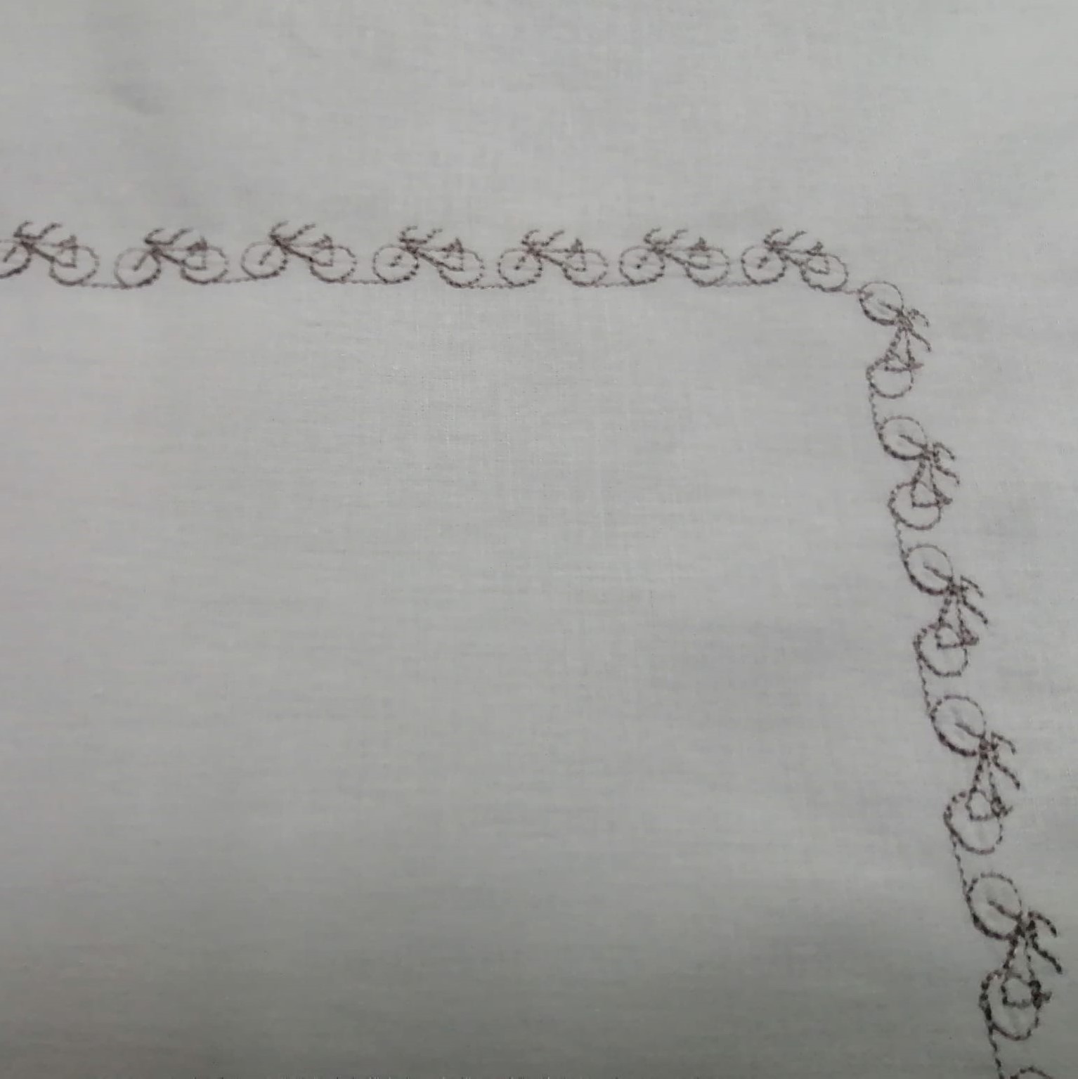 Culoare: gri deschis pal, iar bordura brodata este realizata cu ata de Madeira gri inchis.