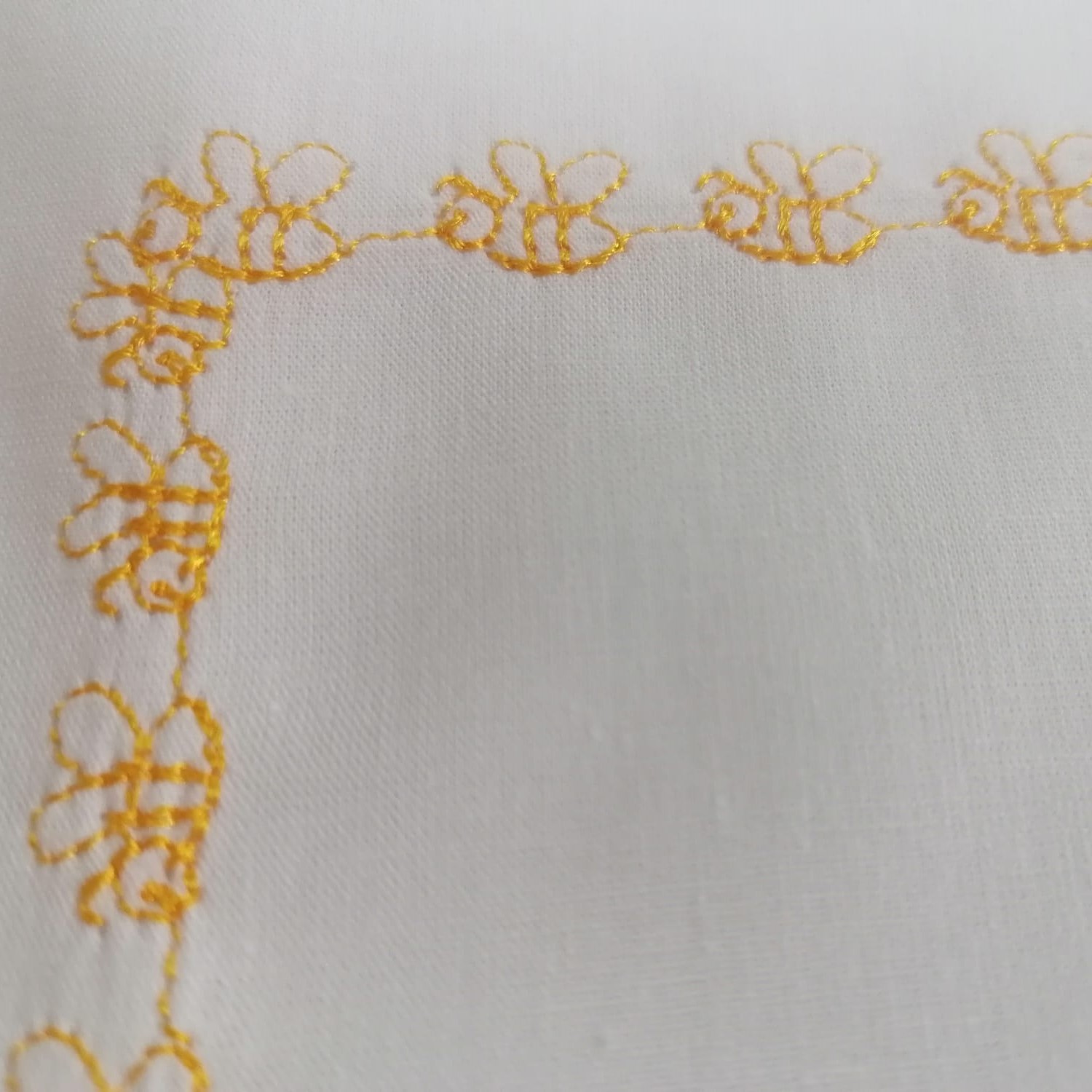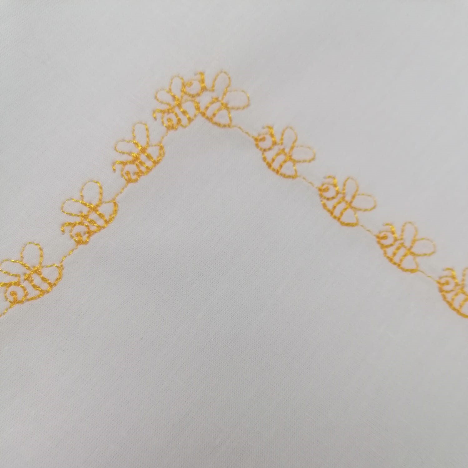 Culoare: alb, iar bordura brodata este realizata cu ata de Madeira bej auriu.
