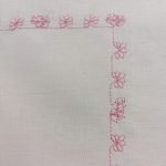 Culoare: roz deschis, iar bordura brodata este realizata cu ata de broderie roz inchis.