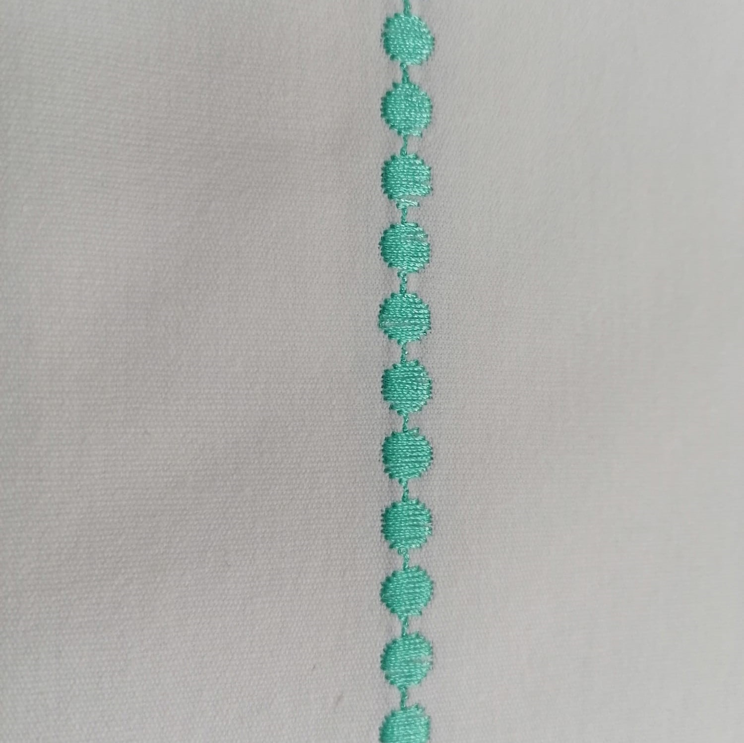 Culoare: alb, iar bordura brodata este realizata cu ata de Madeira vernil.