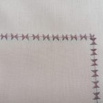 Culoare: roz prafuit, pal, iar bordura brodata este realizata cu ata de Madeira roz mineral inchis.