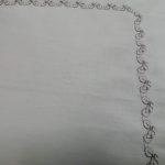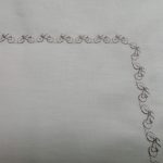 Culoare: gri deschis pal, iar bordura brodata este realizata cu ata de Madeira gri inchis.