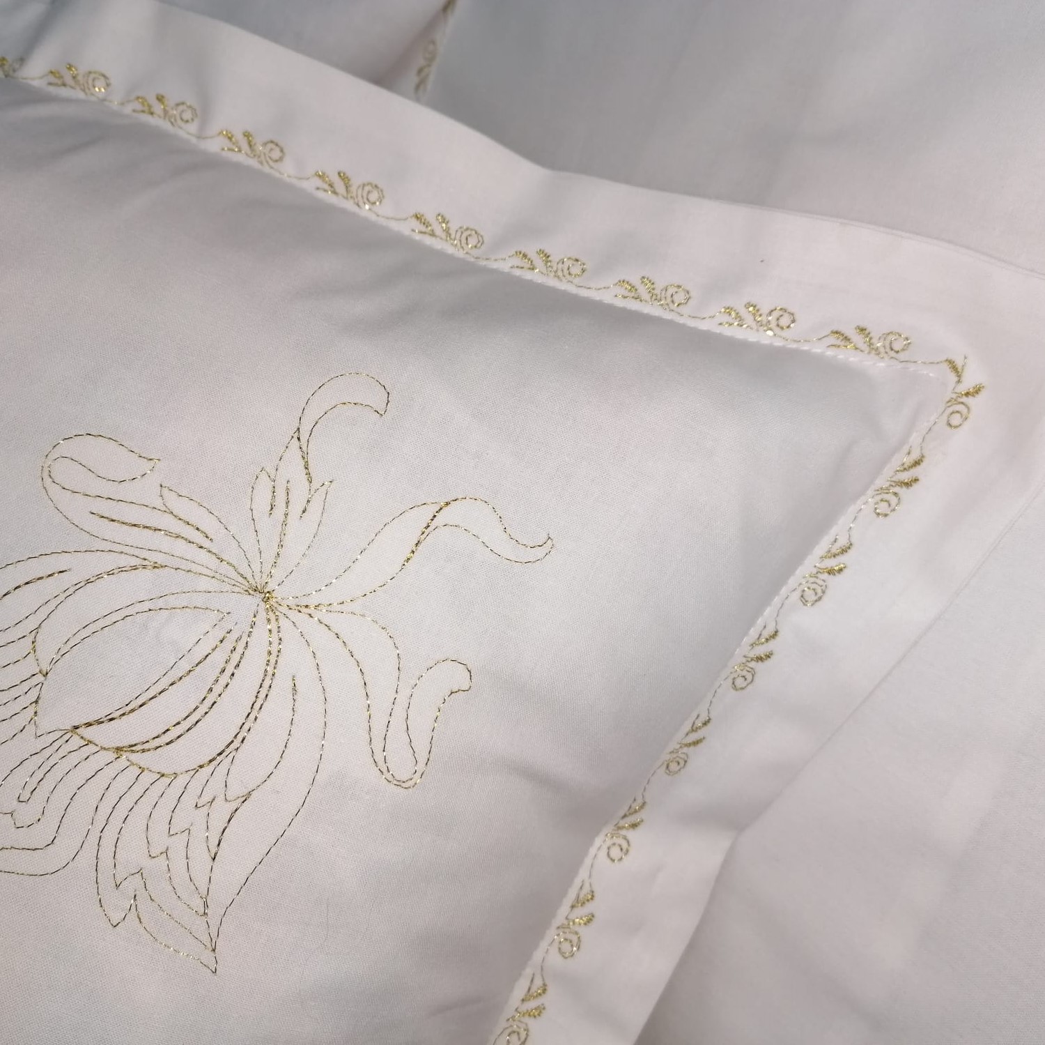Produsul se remarca nu doar prin designul unic, chenar cu broderie decorativa, dar si prin calitatile materialului din care este confectionat: bumbac 100% natural, o tesatura premium, caracterizata de o densitate a tesaturii, mai mare ca bumbacul obisnuit, firul fiind mai fin si nepieptanat. Toate acestea fac tesatura sa fie mai rezistenta decat una obisnuita, iar lenjeria poate fi considerata o investitie pe termen lung.
