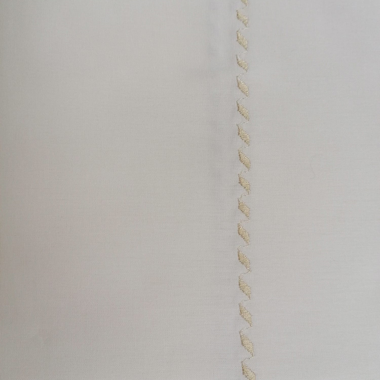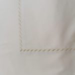 Culoare: crem pal, iar bordura brodata este realizata cu ata de Madeira crem inchis..