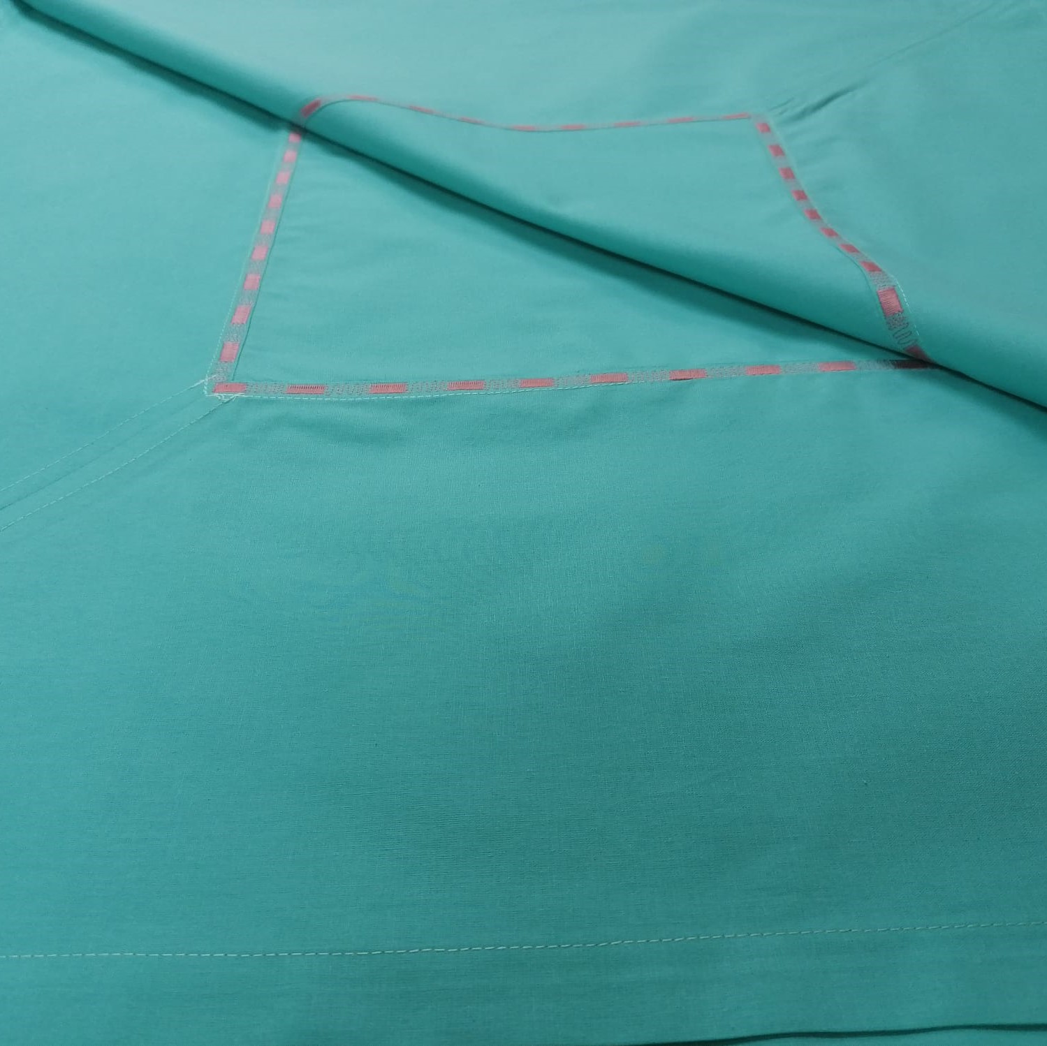 Cearsaf cu elastic pentru saltea 180 x 200 cm, Casa Bucuriei, turcoaz, bumbac natural 100%, bordura broderie decorativa