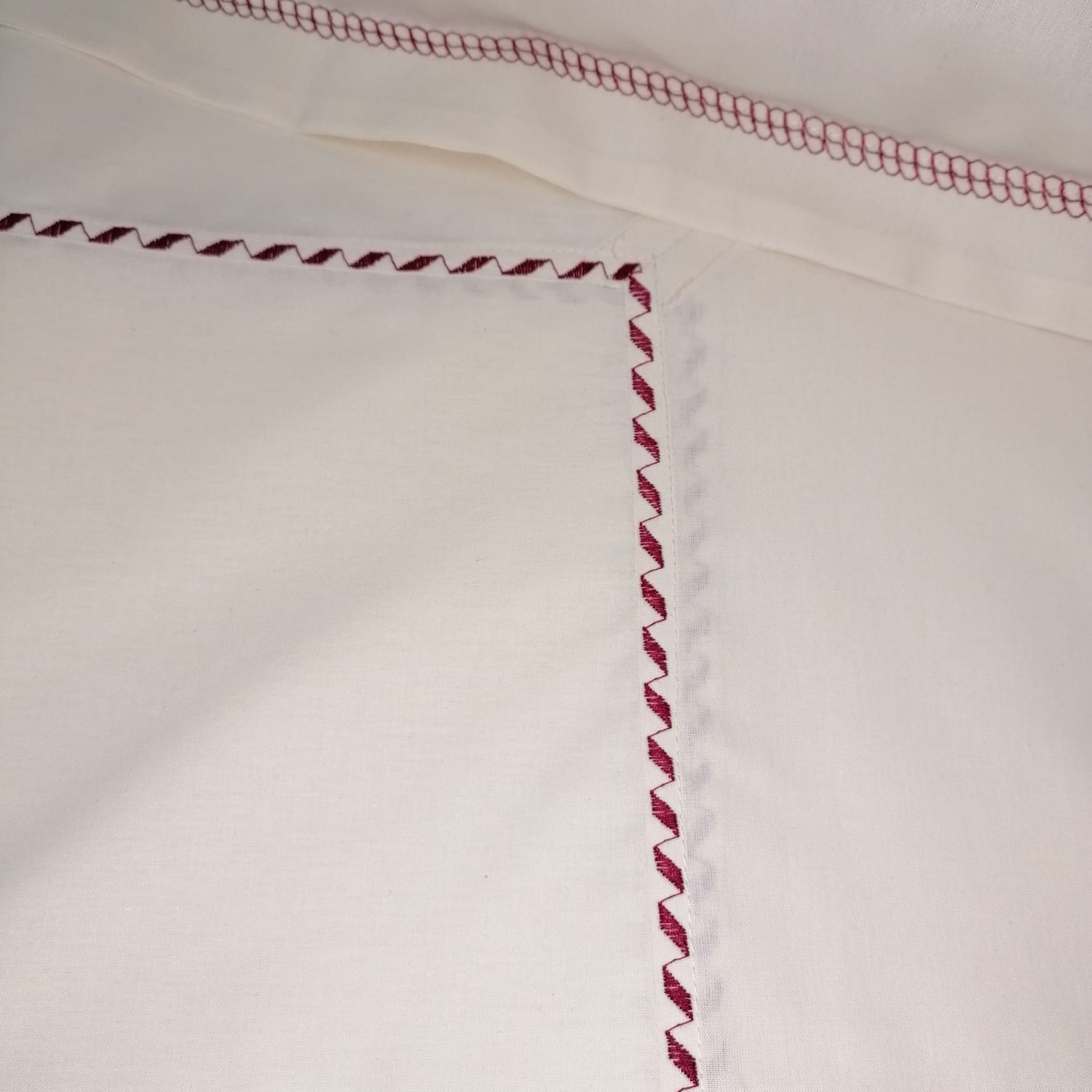 Cearsaf cu elastic pentru saltea 210 x 210 cm, Casa Bucuriei, ivory cu bordo, bumbac natural 100%, bordura decorativa