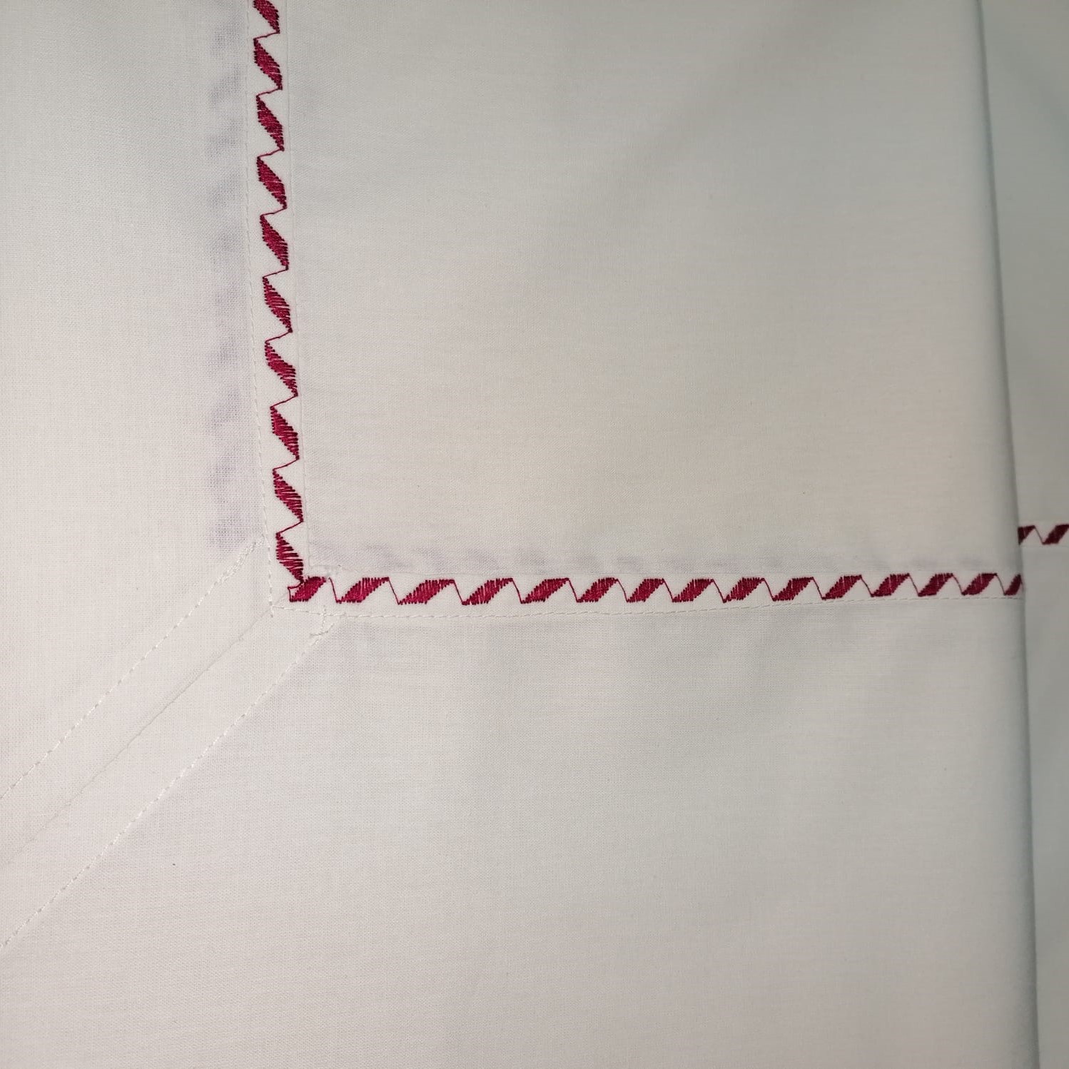 Cearsaf cu elastic pentru saltea 220 x 220 cm, Casa Bucuriei, ivory cu bordo, bumbac natural 100%, bordura decorativa