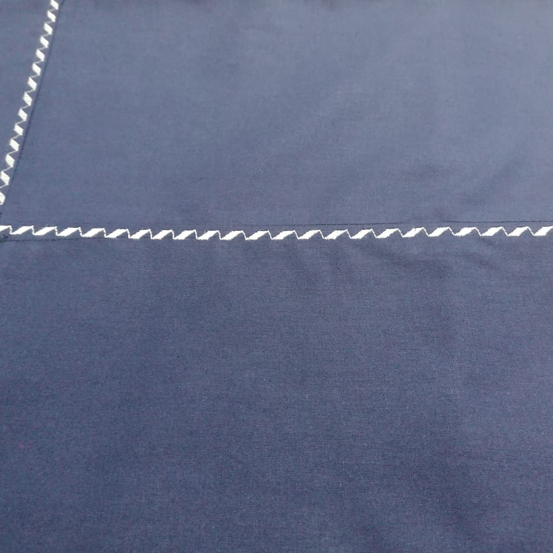 Cearsaf pat 280 cm x 280 cm, Casa Bucuriei, model Elegance, bleumarin inchis, bumbac natural 100%, chenar decorativ