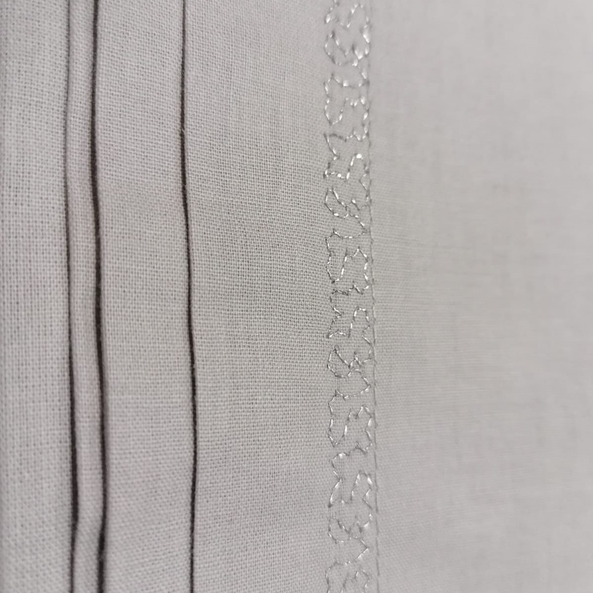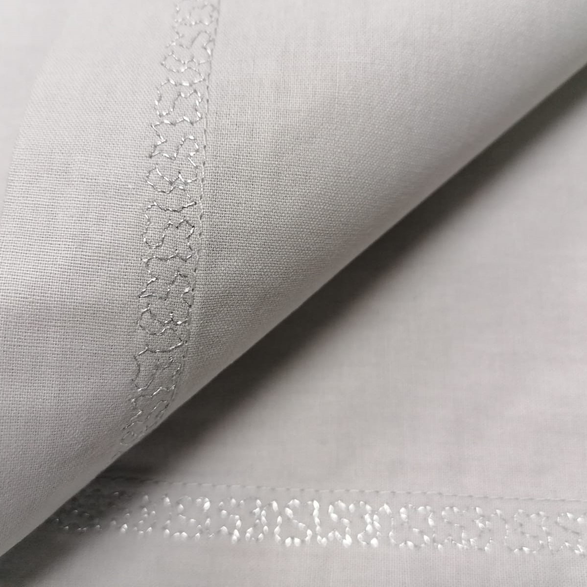 Produsul se remarca nu doar prin designul unic, chenar cu broderie decorativa, dar si prin calitatile materialului din care este confectionat: bumbac 100% natural, o tesatura premium, caracterizata de o densitate a tesaturii, mai mare ca bumbacul obisnuit, firul fiind mai fin si nepieptanat. Toate acestea fac tesatura sa fie mai rezistenta decat una obisnuita.