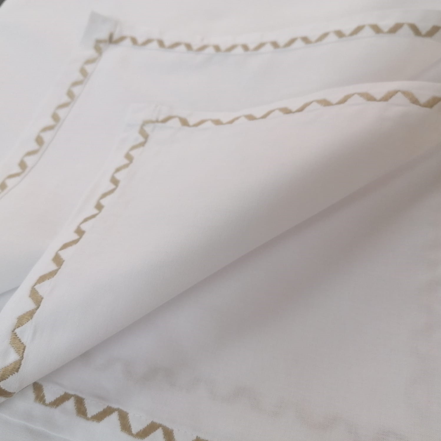 Produsul se remarca nu doar prin designul unic, finisat cu bordura decorata cu cusatura zig-zag, dar si prin calitatile materialului din care este confectionat: bumbac 100% , o tesatura premium, caracterizata de o densitate a tesaturii mai mare ca bumbacul obisnuit, firul fiind mai fin si nepieptanat. Toate acestea fac tesatura sa fie mai rezistenta decat una obisnuita.