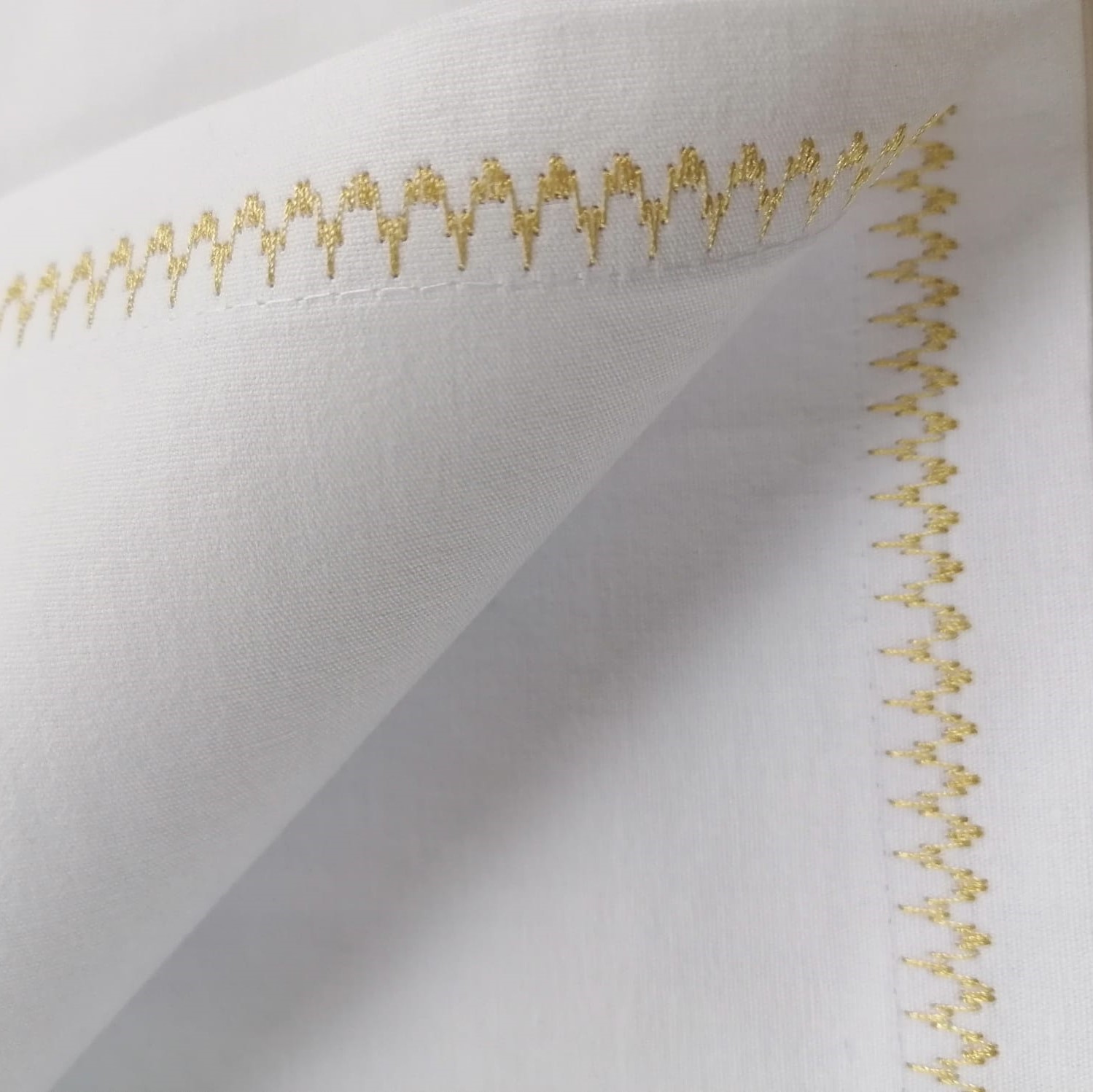 Culoare: alb, iar chenarul si bordura brodata este realizata cu ata de Madeira crem inchis..