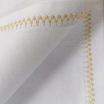 Culoare: alb, iar chenarul si bordura brodata este realizata cu ata de Madeira crem inchis..
