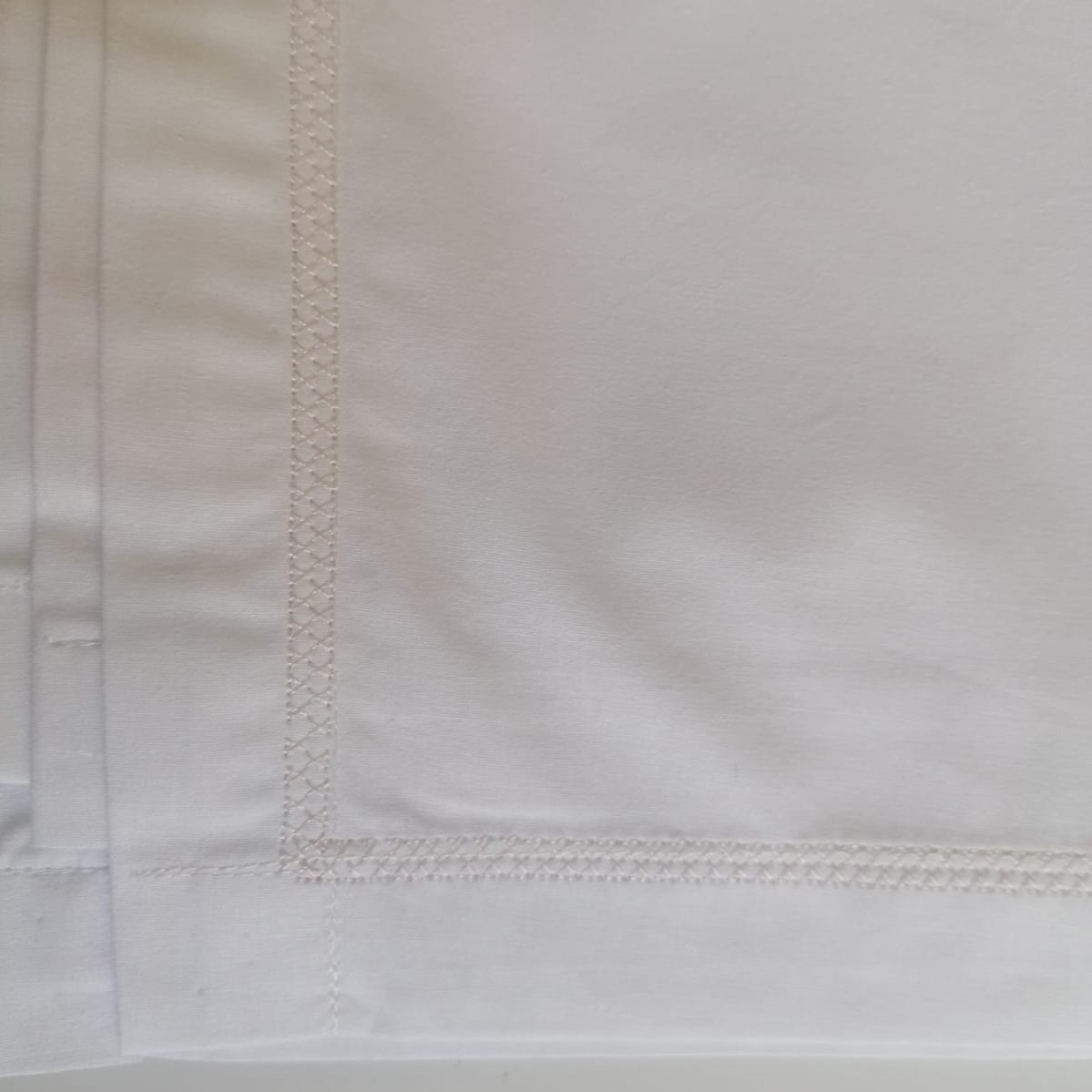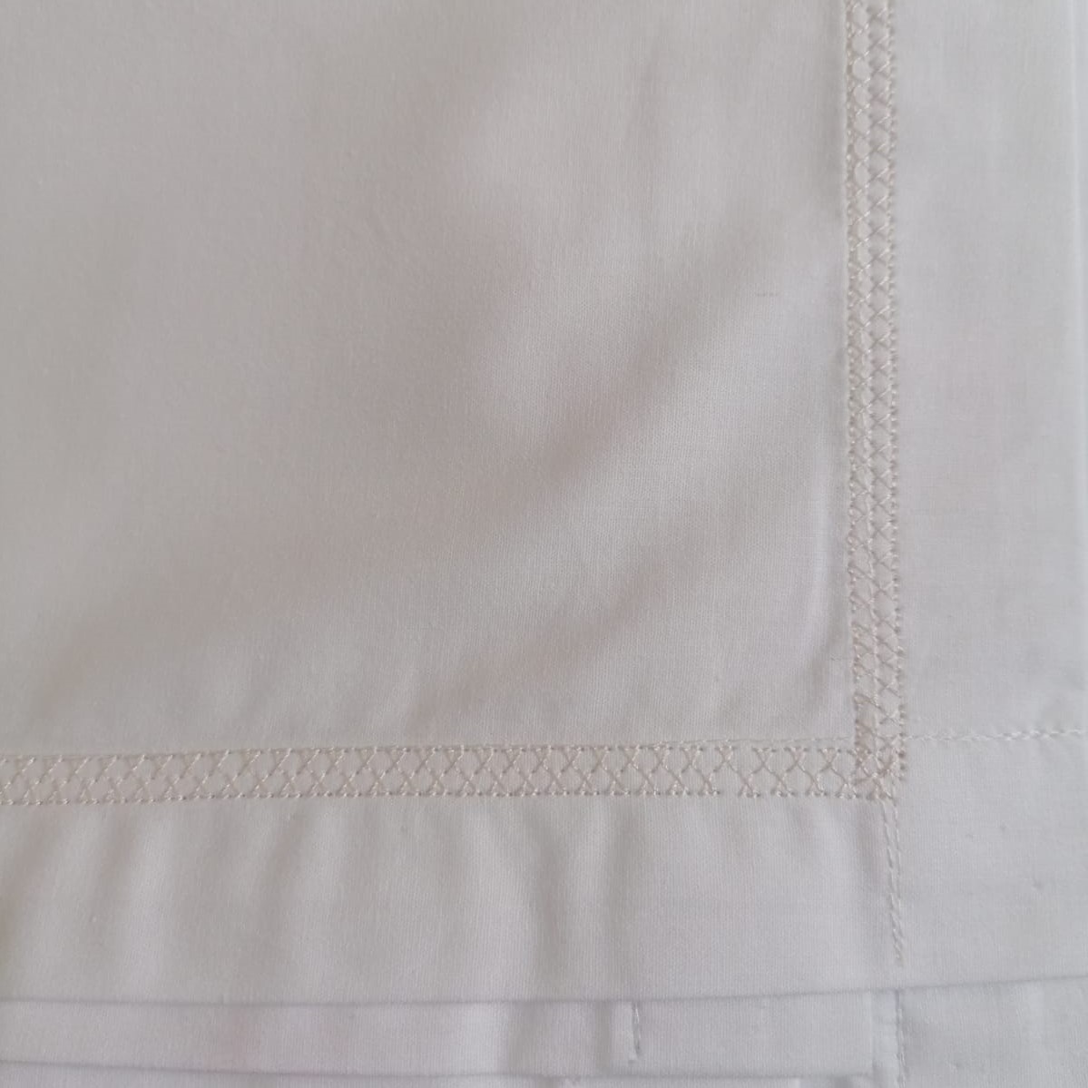 Cearsaful de pat  se remarca atat prin designul unic dat de bordura decorativa realizata cu ata de Madeira, cat si prin calitatile materialului din care este confectionat: bumbac 100% percale, o tesatura premium, caracterizat de o densitate mai mare a tesaturii si de finetea materialului.