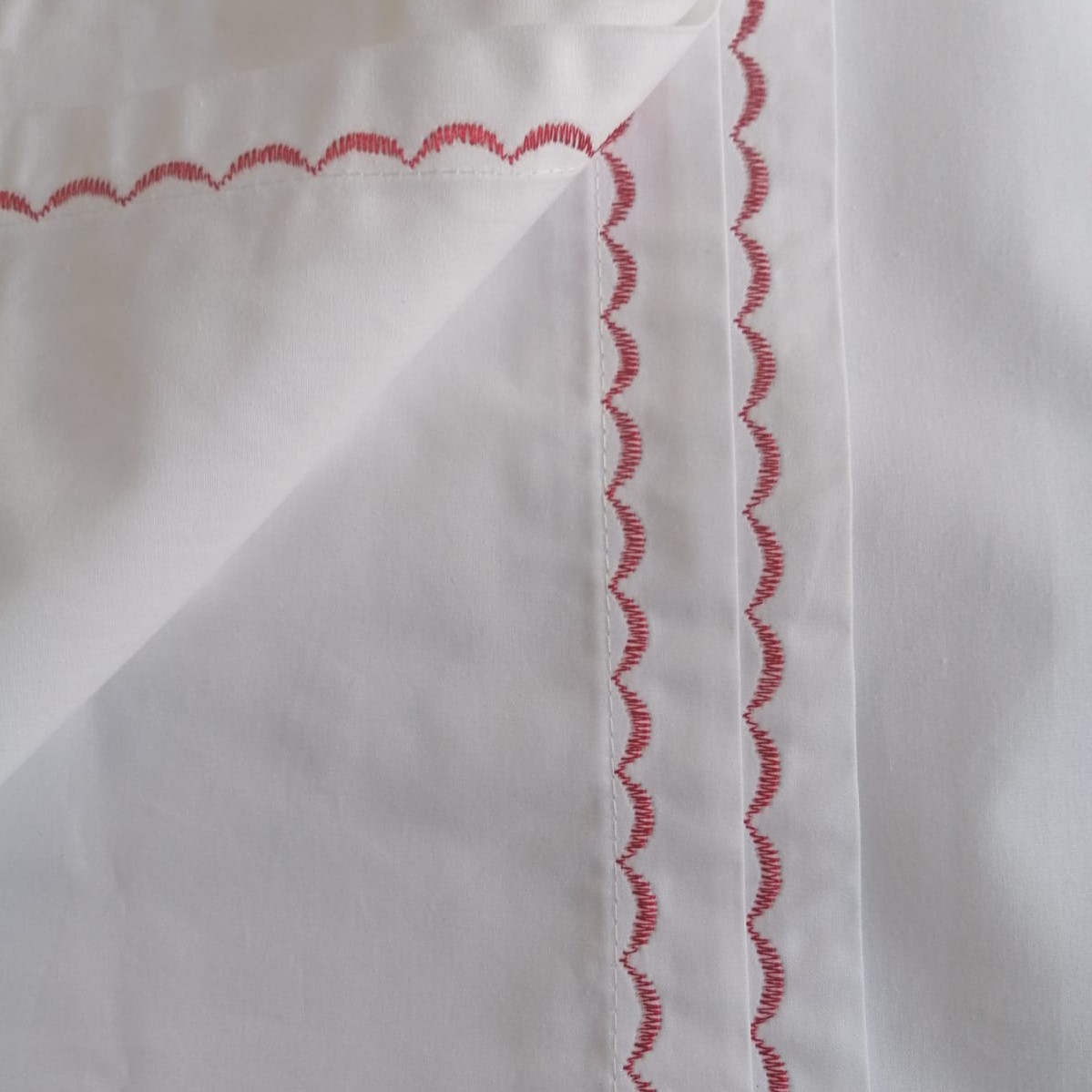Cearsaf pat Luminita, cusatura decorativa, alb/rosu, bumbac, 280/260