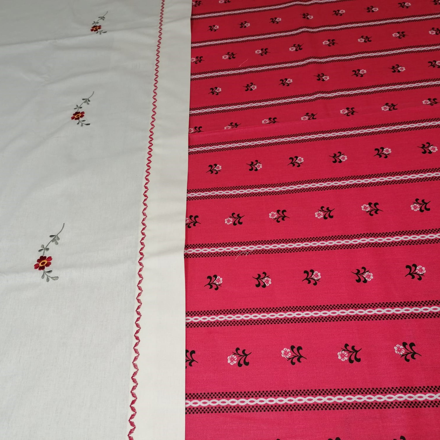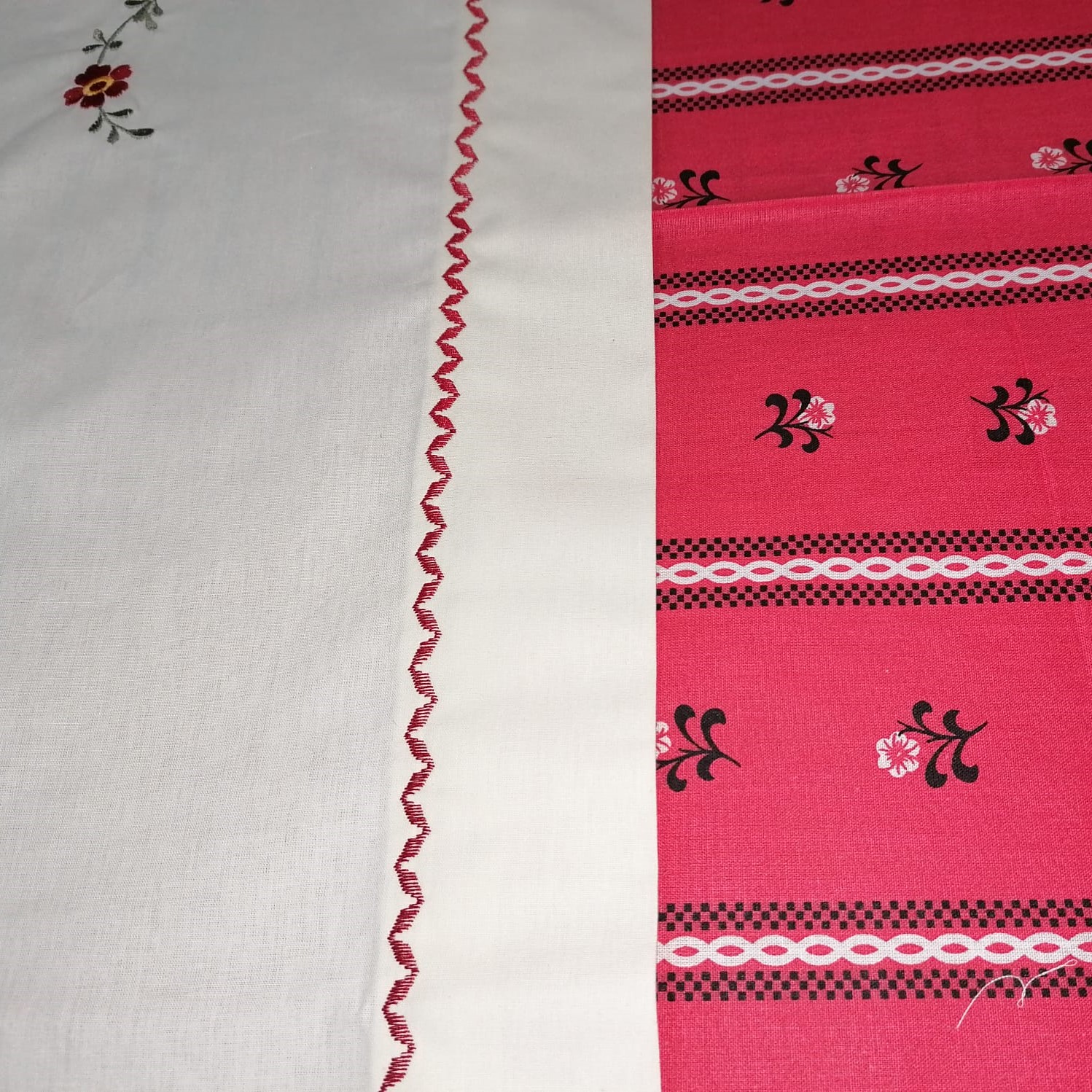 Designul husei de pilota, cu imprimeu floral discret pe fundal rosu coral, broderia si contrastul de culori, cat si tesatura naturala, fac din aceasta husa de pilota una foarte fashion si moderna si la fel de atragatoare acum ca si atunci cand a fost pentru prima data in voga.