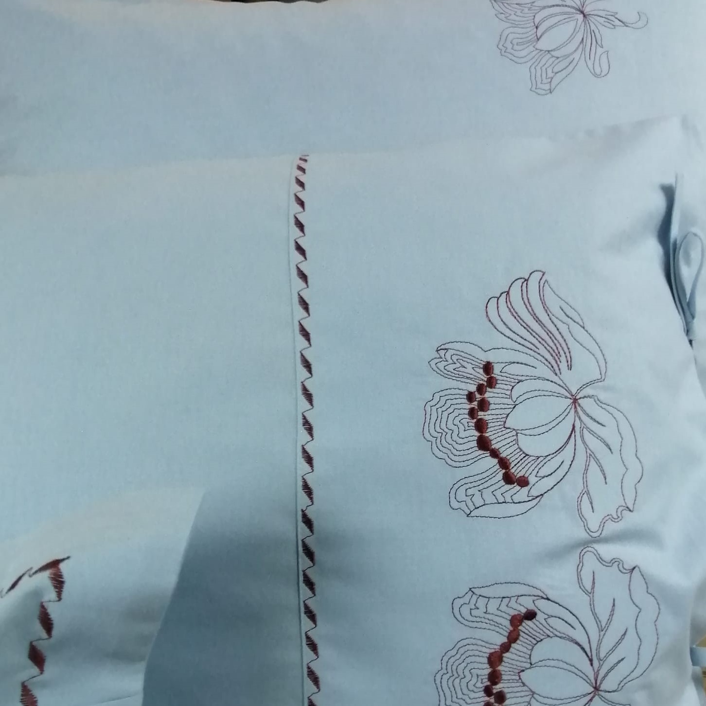 Acest adorabil cearsaf de pilota cu broderie, in stil italian ( fara spatiu de pilota, se pune sub pilota), ofera un plus de emotie in dormitoarele neutre ale caselor contemporane si ajuta sa va creati un refugiu elegant. Broderia deosebita si contrastul de culori, au capacitatea de a energiza o camera si de a crea o atmosfera aerisita si eleganta.