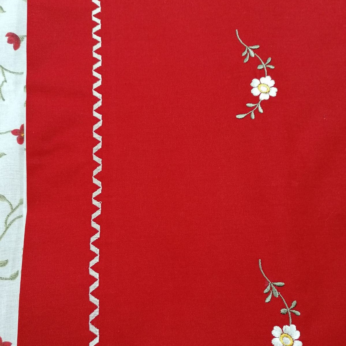 Designul lenjeriei de pat, cu imprimeu floral discret pe fundal ivoar, broderia si contrastul de culori ivoar si rosu, cat si tesatura naturala, fac din aceasta lenejerie una foarte fashion si moderna si la fel de atragatoare acum ca si atunci cand a fost pentru prima data in voga. Ea iti va aduce aminte de zilele frumoase de primavara, iar astfel te vei bucura de un somn linistit.