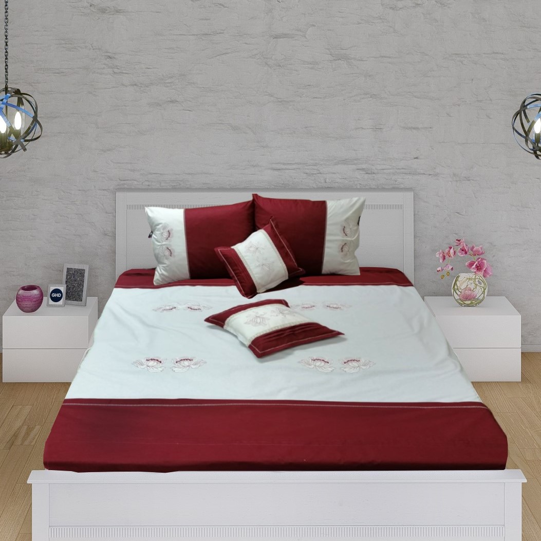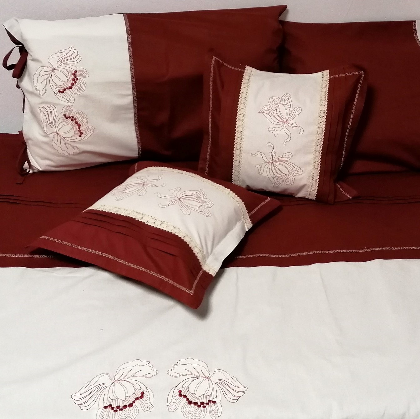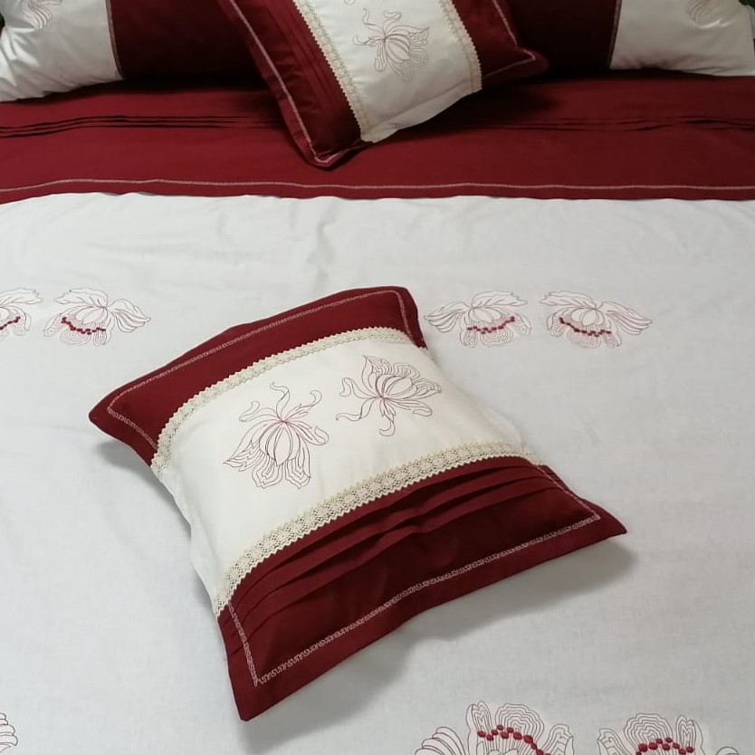 Cearsaf pilota Iris, broderie, bordo/ivoar, bumbac 100%, 200/220cm