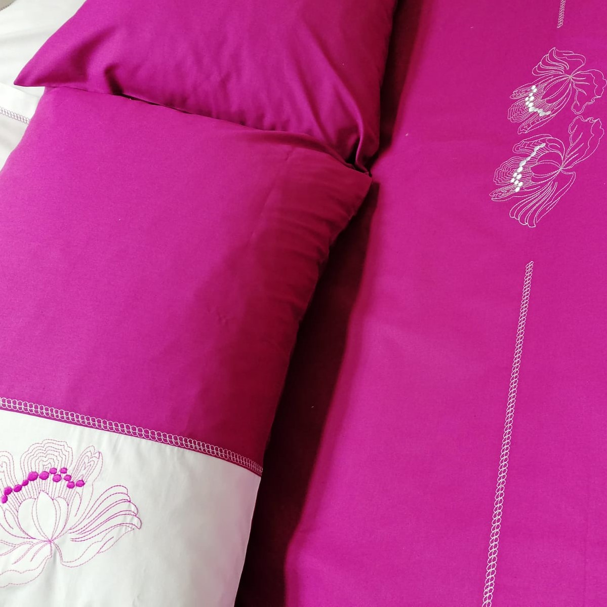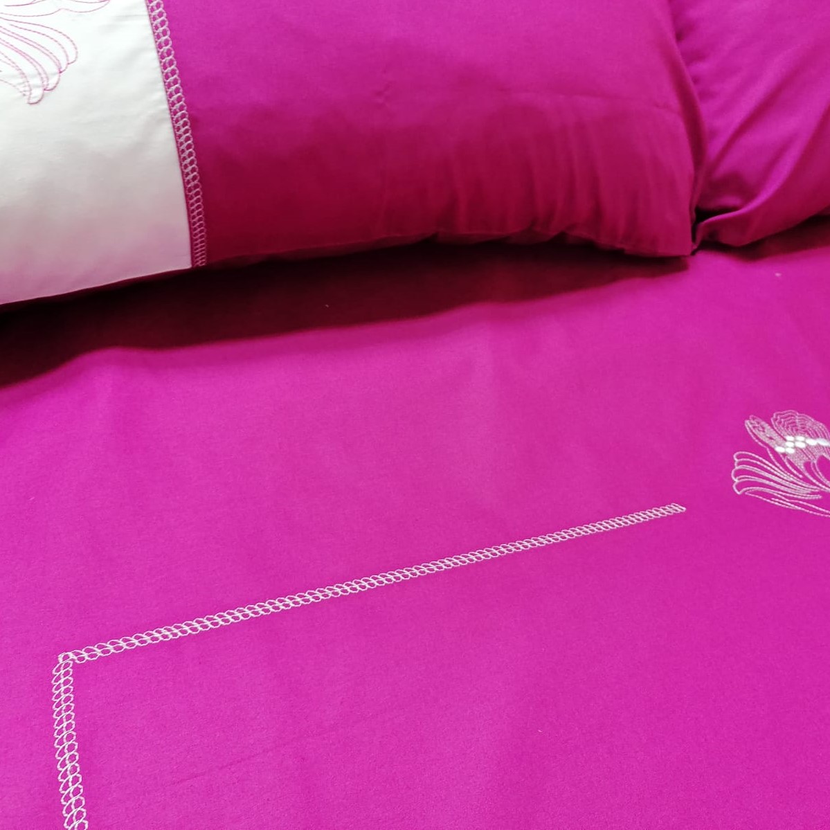 Culoarea roz fucsia are atat proprietati estetice cat si terapeutice, promitand un decor interior sic si rafinat, super trendy. Setul de lenjerie de pat are rol dublu, pentru ca poate fi folosit si in timpul zilei pentru a imbraca frumos patul, oferind dormitorului aspectul unui camin cald si ingrijit, iar combinarea culorilor roz fucsia (magenta) si alb va da senzatia ca respirati aer curat in locuinta d-voastra.