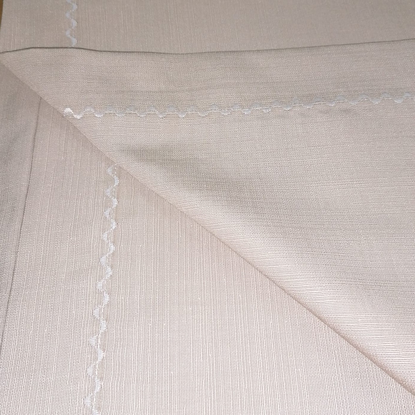 Fata de masa din gama Clasic este confectionata din material textil de calitate, bumbac in amestec cu poliester, 400g/mp, fiind astfel reziztenta la pete; are finisaj cu tiv lat de 5 cm si cusatura decorativa alba.