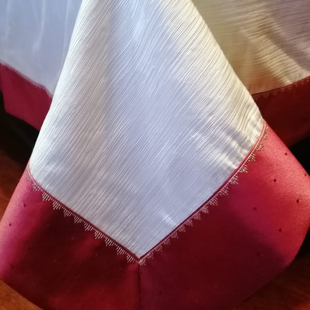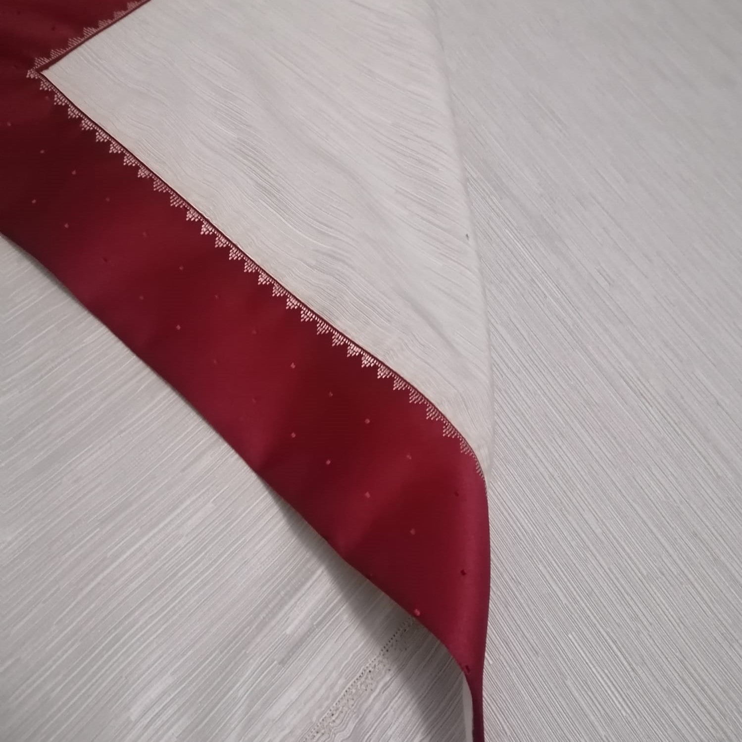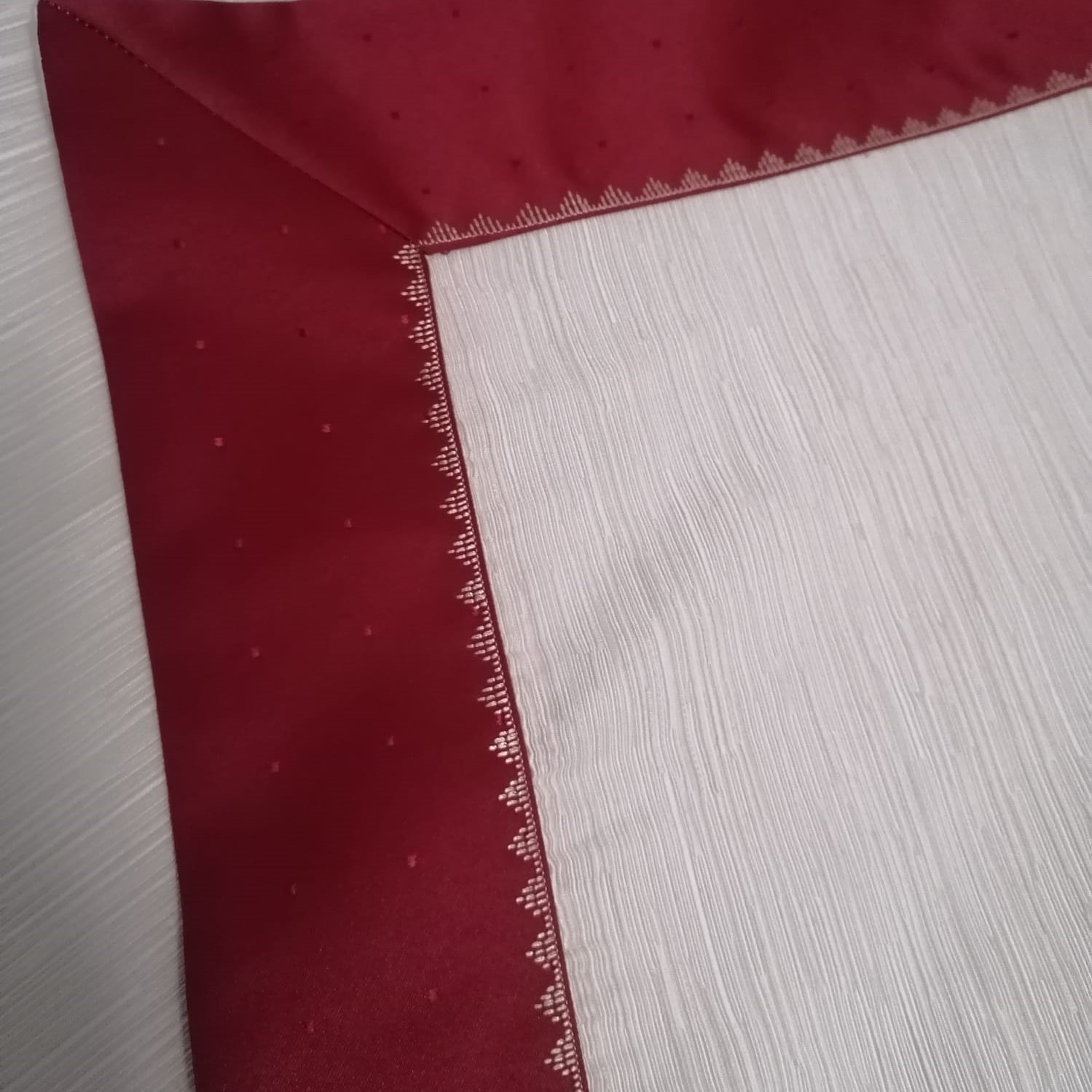 Fata de masa 150/195 cm, Casa Bucuriei, model Luxury, bej deschis/rosu bordo, jacard