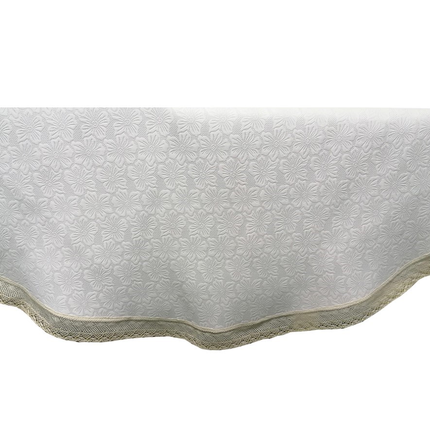 Fata de masa este un accesoriu decorativ inedit, menit sa se evidentieze in orice incapere Modelul deosebit si elegant, tesatura plina, precum si bordura ornamentata cu dantela crosetata din bumbac, vor da un aer aparte intregii incaperi, intregind bucuria si buna dispozitie specifice petrecerilor sau reuniunilor in familie. Broderia delicata este pusa in valoare si adauga piesei un plus de rafinament.