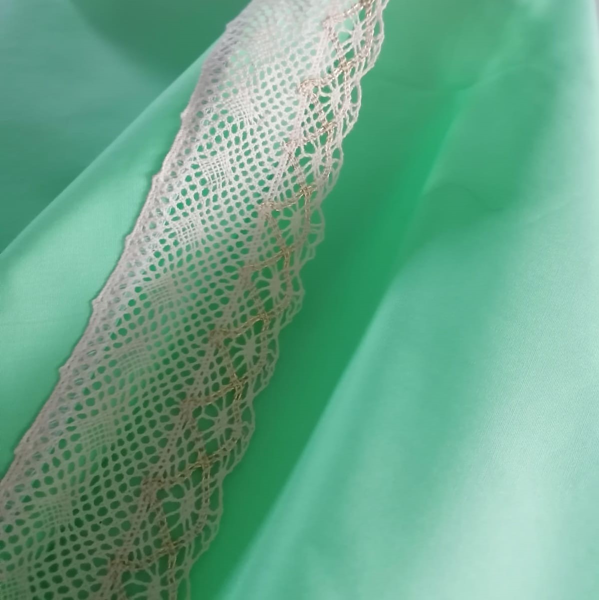 Fata de masa este un accesoriu decorativ inedit, menit sa se evidentieze in orice incapere Modelul deosebit si elegant, precum si bordura ornamentata cu dantela crosetata din bumbac si fir auriu, vor da un aer aparte intregii incaperi, intregind bucuria si buna dispozitie specifice petrecerilor sau reuniunilor in familie. Broderia delicata este pusa in valoare si adauga piesei un plus de rafinament.