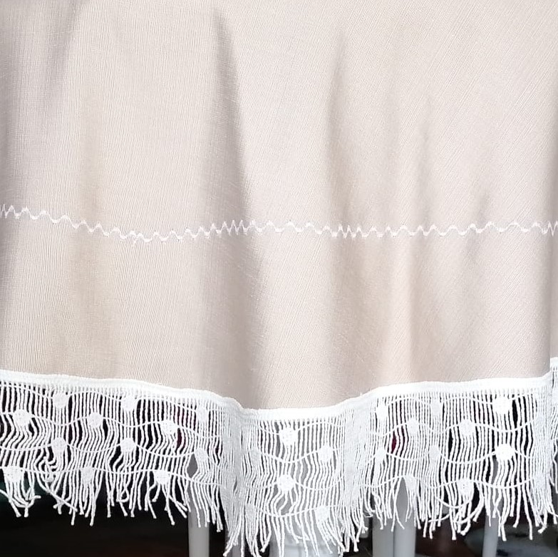Fata de masa rotunda 160 diametrul, Casa Bucuriei, bej/alb, dantela bumbac