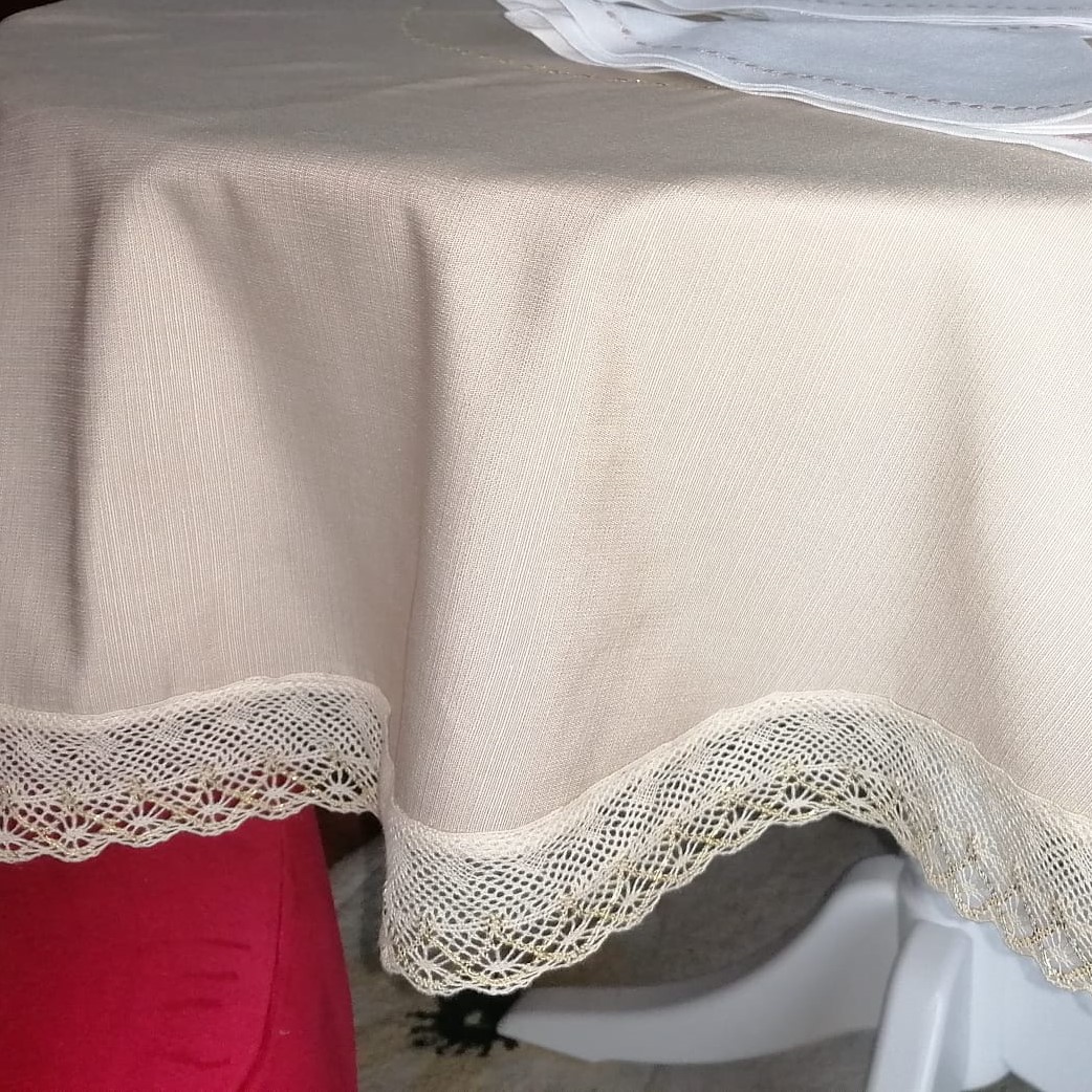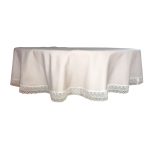 Fata de masa este un accesoriu decorativ inedit, menit sa se evidentieze in orice incapere Modelul deosebit si elegant, tesatura plina, precum si bordura ornamentata cu dantela crosetata din bumbac, vor da un aer aparte intregii incaperi, intregind bucuria si buna dispozitie specifice petrecerilor sau reuniunilor in familie. Broderia delicata este pusa in valoare si adauga piesei un plus de rafinament.