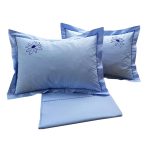 Culoare: albastru deschis si broderia este realizata cu ata bleumarin inchis.