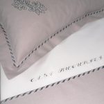 Fata de perna brodata 50 cm x 70 cm, Casa Bucuriei, model Baroc, gri, bumbac natural 100%