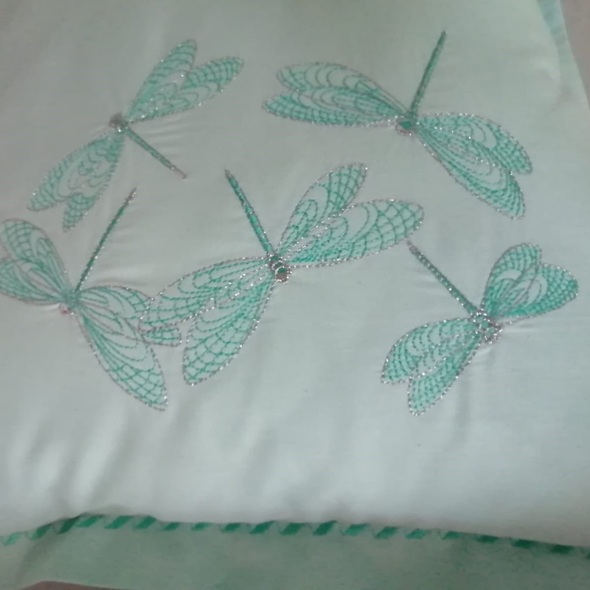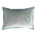 Fata perna 40 x 40 cm, Casa bucuriei, model Elegance, vernil/turcoaz, bumbac natural 100%, brodate