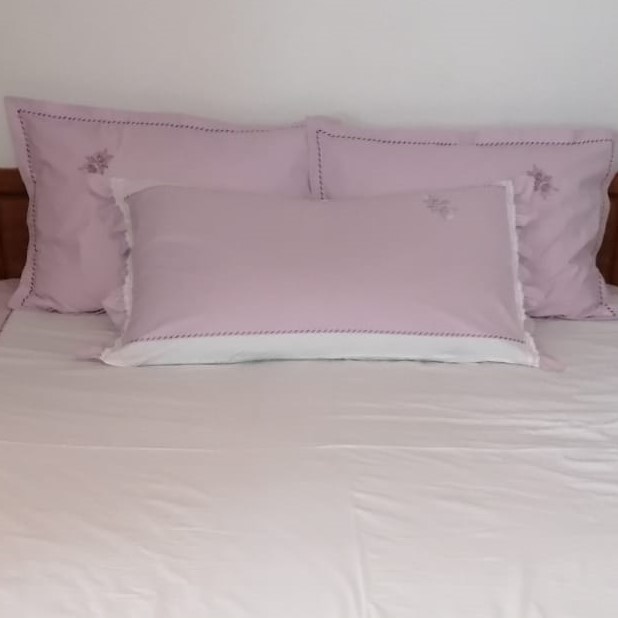 Combinatia intre culori, finisajele in cusaturi decorative si broderia, au capacitatea de a energiza o camera si de a crea o atmosfera aerisita, delicata si placuta, unde veti avea senzatia ca respirati aer curat. Pentru a intregi nivelul de confort si din punct de vedere senzitiv, nu doar vizual, materialul folosit pentru confectionarea fetei de perna, bumbacul natural fabricat din planta cu acelasi nume, este un produs non-alergen si poate reprezenta alegerea potrivita de material textil, chiar si pentru copii sau persoanele cu pielea sensibila.