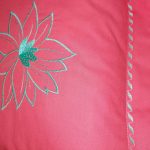 Fata perna brodata 70 x 70 cm, Casa bucuriei, model Water Lily, coral/turcoaz, bumbac 100%
