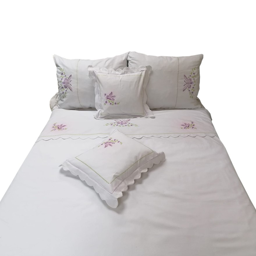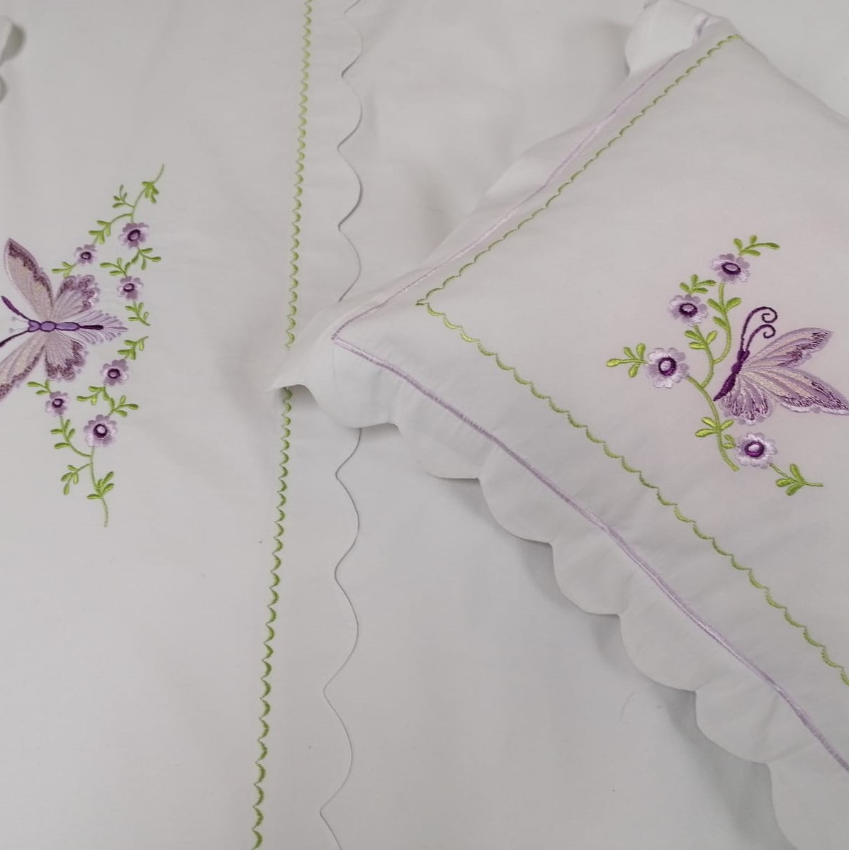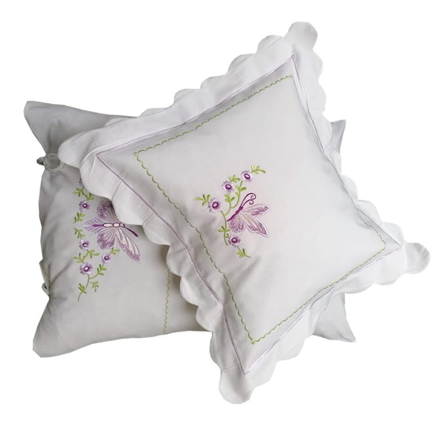 Husa de perna Fluturi, broderie, alb/multicolor, bumbac percale 100%, 50 x 50