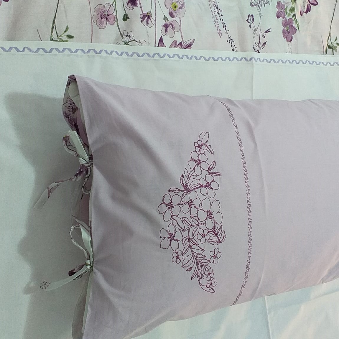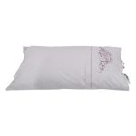 Designul fetei de perna cu broderie florala de culoare mov pe fundal lila, cat si tesatura naturala, fac din aceasta husa una foarte fashion si moderna. Ea iti va aduce aminte de zilele frumoase de primavara, iar astfel te vei bucura de un somn linistit. Materialul pe care l-am ales, bumbacul natural fabricat din planta cu acelasi nume, este un produs non-alergen si poate reprezenta alegerea potrivita de material textil, chiar si pentru copii sau persoanele cu pielea sensibila.