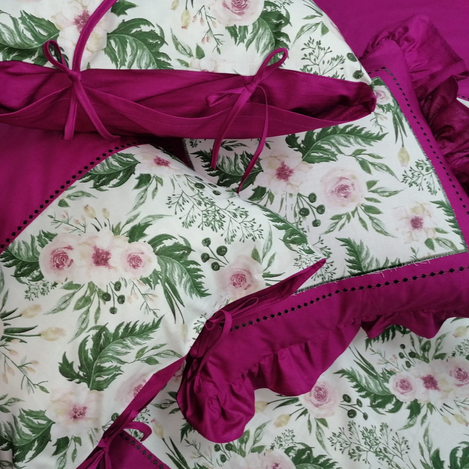 Designul fetelor de perna in stil romantic, feminin, ofera eleganta, confort si armonie vizuala, fiind o solutie foarte practica pentru cei care doresc un decor dus dincolo de tiparele moderne. Culoarea roz fucsia are atat proprietati estetice cat si terapeutice, promitand un decor interior sic si rafinat, super trendy, oferind camerei aspectul unui camin cald si ingrijit.