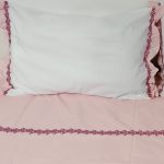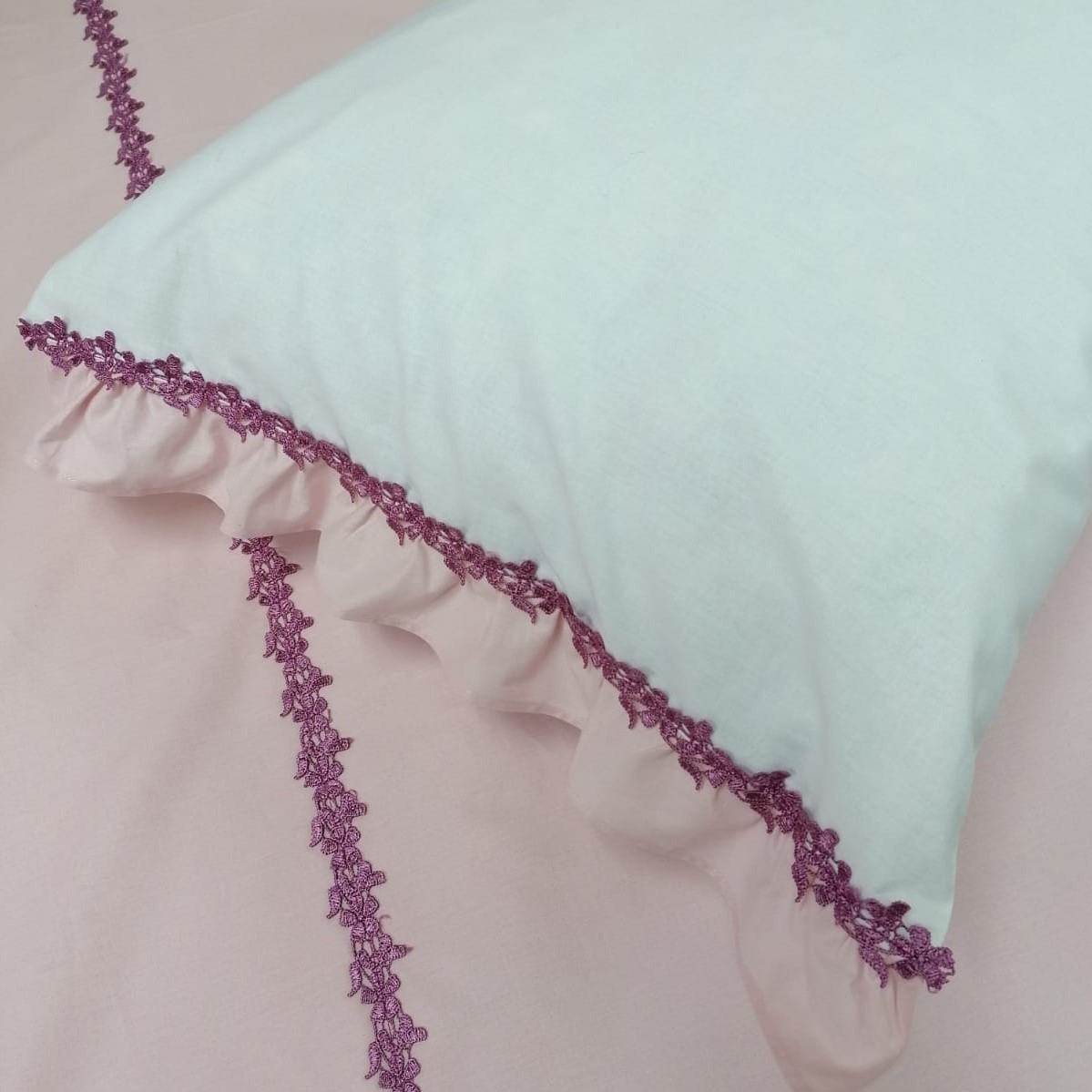 Produsul se remarca nu doar prin designul unic, accesorizata cu dantela si bordura cu detalii , dar si prin calitatile materialelor din care este confectionat: Bumbac 100%. Bumbacul este o fibra durabila, regenerabila si prietenoasa cu mediul pentru tot ciclul de viata. Izoleaza bine caldura si se comporta bine si la temperaturi ridicate. Materialul natural este hipoalergenic si permite corpului sa respire. Bumbacul, datorita faptului ca permite aerului sa circule, absoarbe umezeala lasand pielea uscata si asigurand un somn linistit.