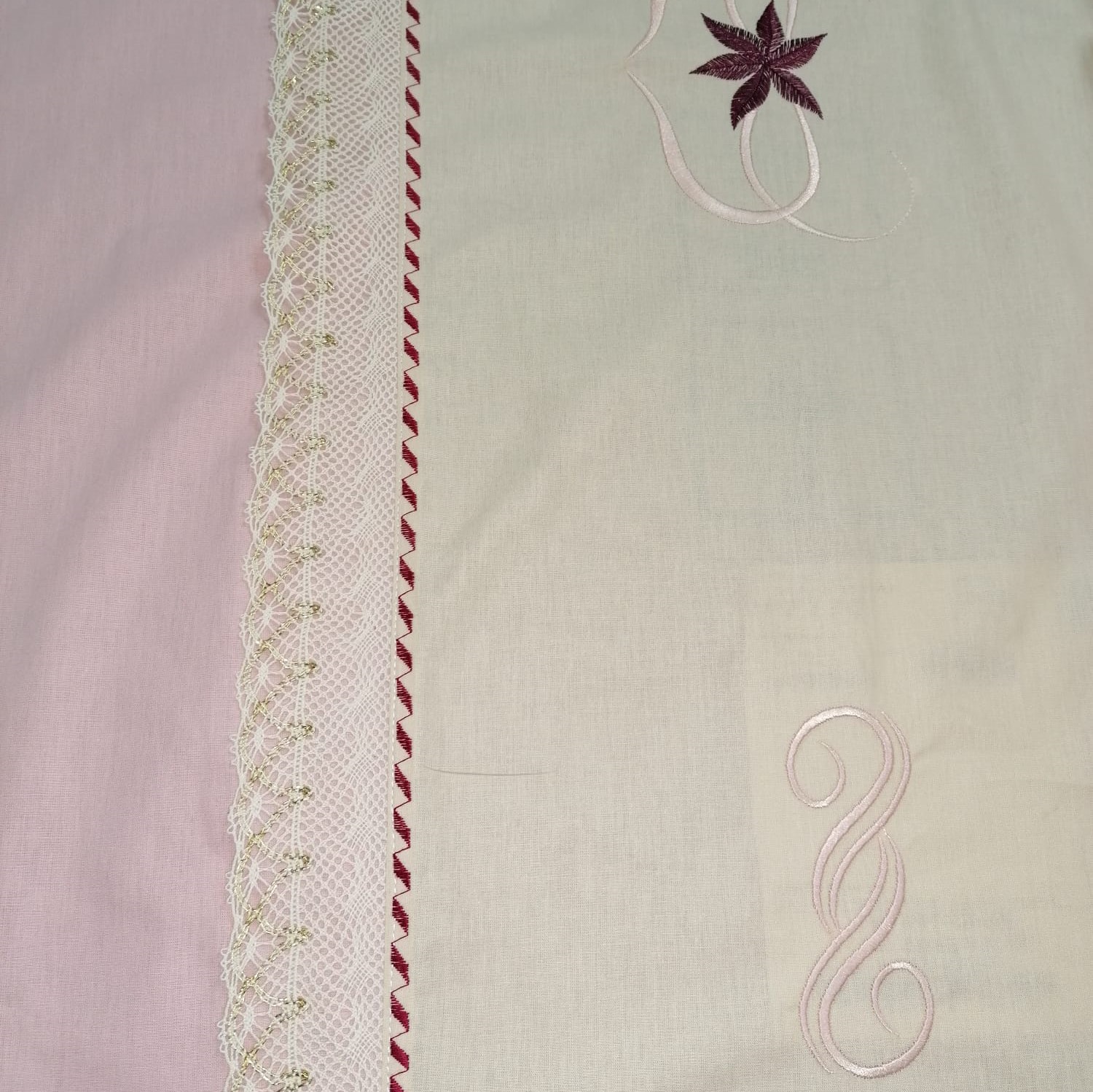 Culoare: roz mineral si cream, iar broderia cu ata nuanta grena si roz pal