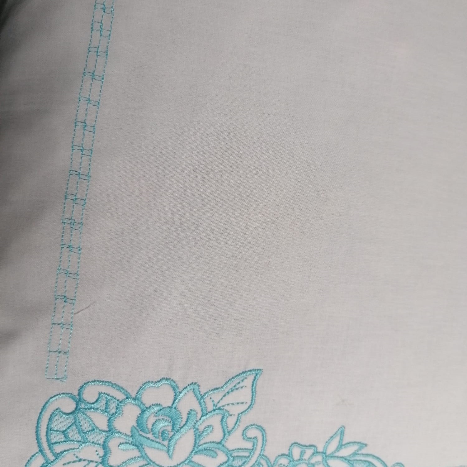 Aceasta adorabila husa de pilota ofera un plus de emotie in dormitoarele neutre ale caselor contemporane si ajuta sa va creati un refugiu elegant. Combinatia extrem de vie intre culorile alb si albastru turcoaz, broderia si contrastul de culori, au capacitatea de a energiza o camera si de a crea o atmosfera aerisita si curata.