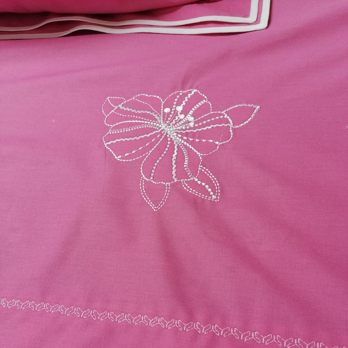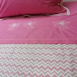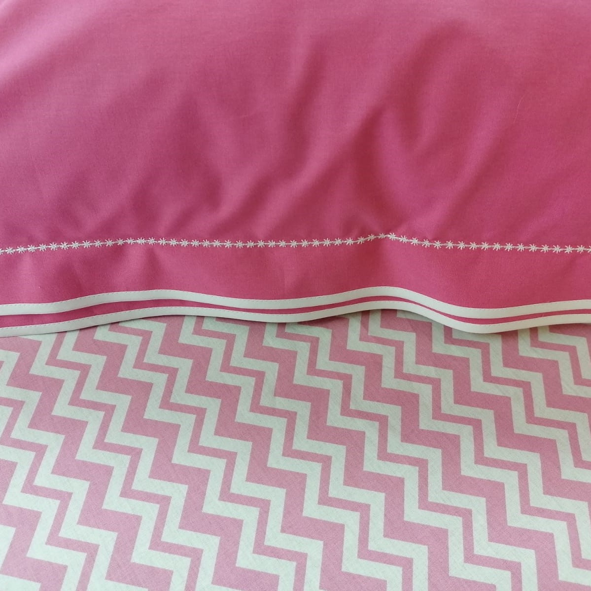 Husa de pilota Lucy este realizata din bumbac ranforce 100%, culoare roz , o nuanta feminina, delicata, care ofera un efect de confort si rafinament camerei, si este personalizata atat prin broderia care o infrumuseteaza si ii aduce valoare, cat si prin asortarea cu tesatura din bumbac imprimat cu dungi albe in zig-zag, oferind echilibrul perfect pentru un dormitor cu personalitate, dar in acelasi timp odihnitor.
