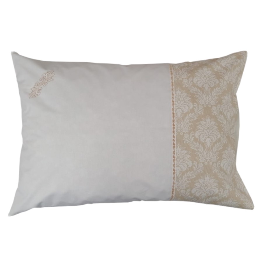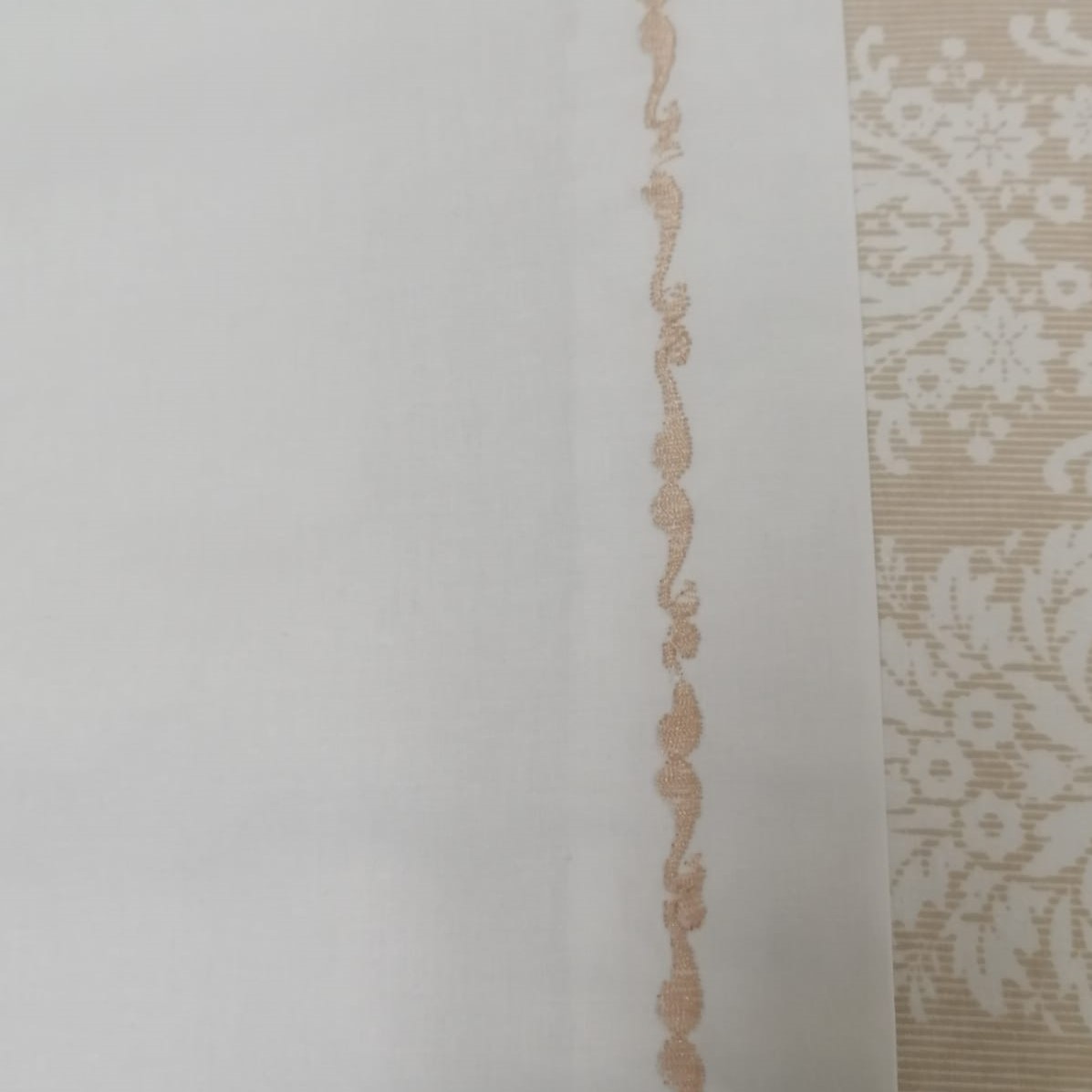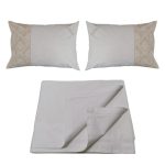Lenjerie pat Baroc broderie, 3 piese, alb/crem, bumbac percale100%, 1 x cearsaf pat 240/220, 2 x fata perna tip oxford 50/70