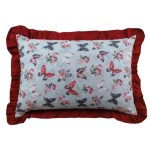 Lenjerie pat Butterfly, 3 piese, culoare rosu/multicolor, bumbac 100% 1 husa pilota 140×200, 1 perna 50×70, 1 perne decorative 50×35