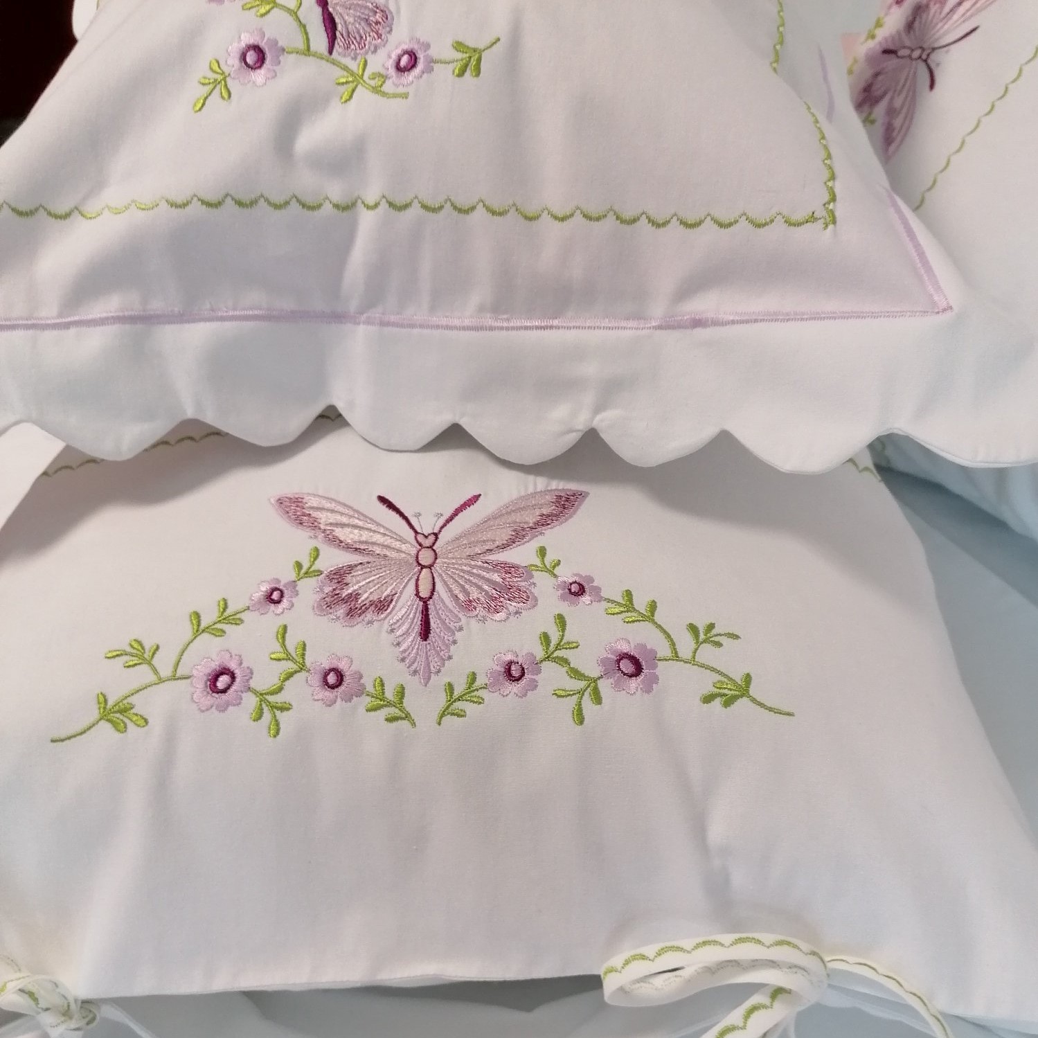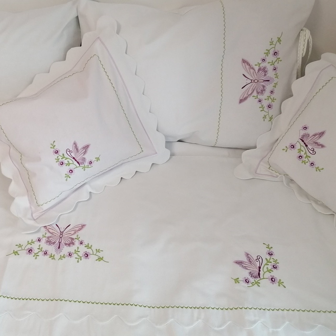 Da o noua viata vechiului tau pat cu aceasta vesela lenjerie cu design rustic, confectionata din 100% bumbac natural si brodata cu ata de Madeira in culori pastel.