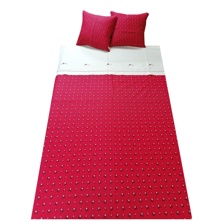 Lenjerie pat o persoana Casa Bucuriei, model Lucy, broderie, 3 piese, rosu/ivoar, bumbac 100%